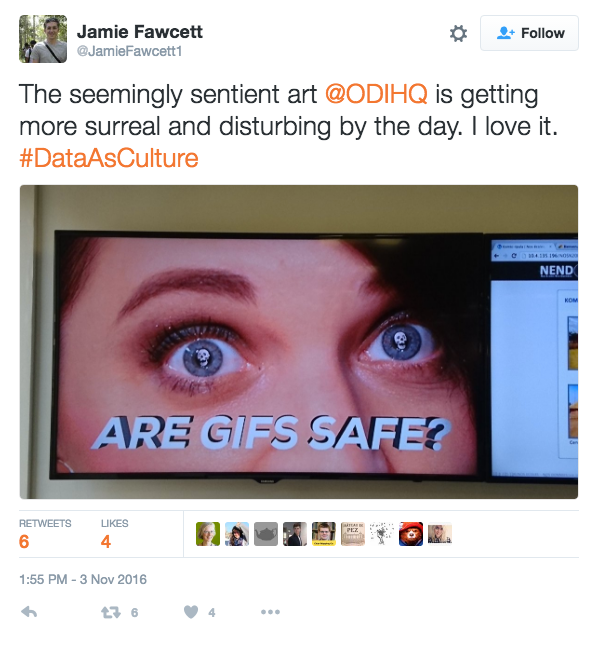 I submitted two complimentary pieces of work to the Thinking Out Loud exhibition at the Open Data Institute in London (curated by Alex MacLean and the ODI).