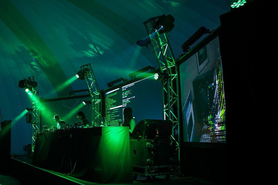 I was lucky enough to one of the participating Algorave performers at the Blue Dot festival, in the shadow of the Lovell radio telescope at Jodrell Bank.