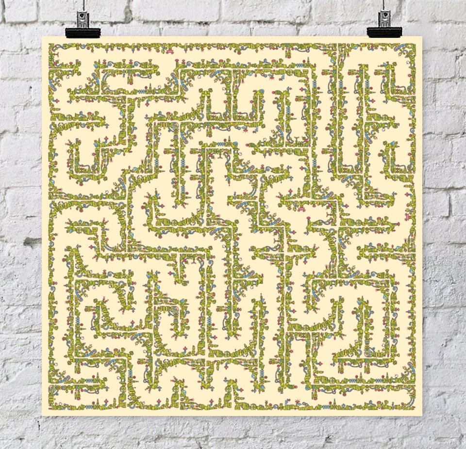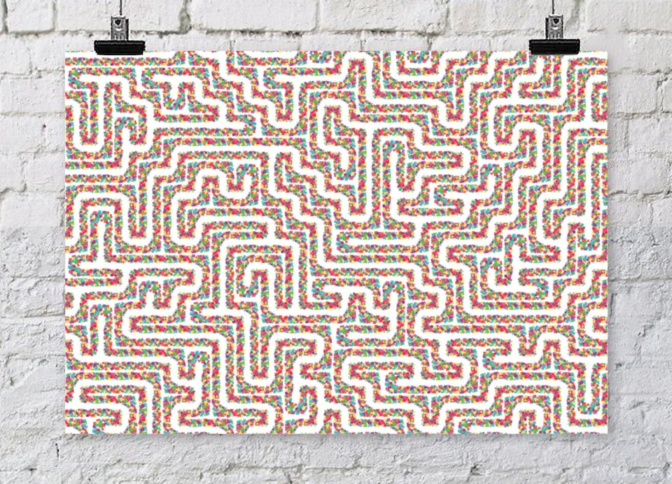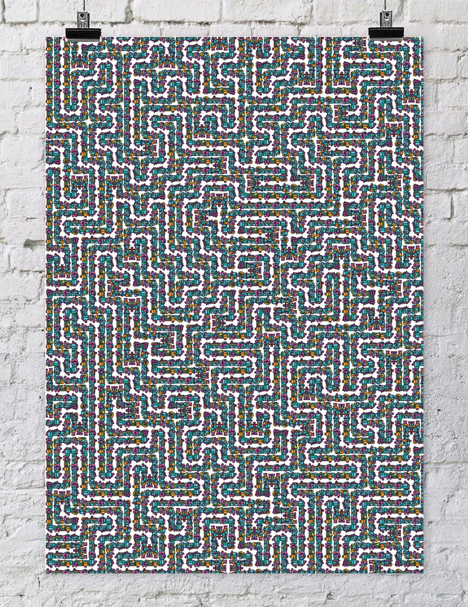 We clattered together our respective worlds to create this new series of highly intricate prints, taking Barney’s beautiful hand-drawn artwork and feeding it through some well-chosen maze generation algorithms, to create create twisting, impossibly dense, hyper-intricate designs.