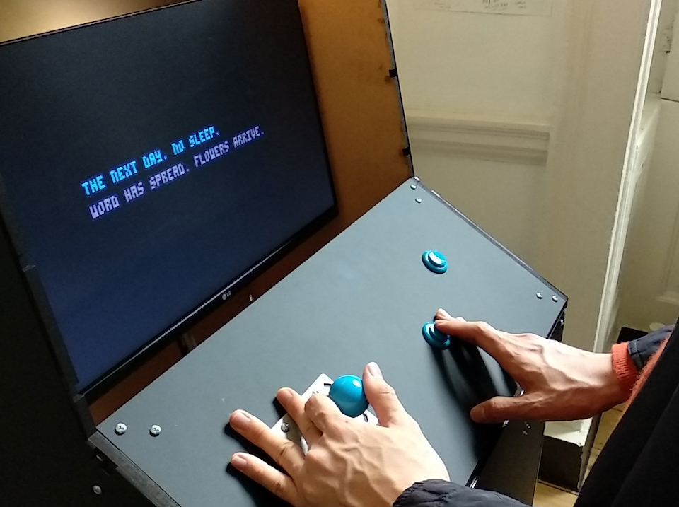 The Loss Levels is a series of fifteen narrative microgames housed in a custom-built arcade cab, exploring aspects of my experience during the 2017 terrorist attack, in which I lost my brother Martyn. The games are designed to explore some of the elements of the experience, without naming any specifics of place or time or name. The games are intentionally simple, designed to mimic old-school 8bit games, and in many ways are a mirror of my earlier game ‘c ya laterrrr’, but depicted in a much more focused and stylised manner.