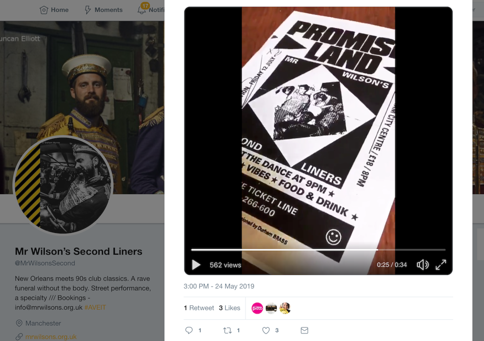 PROMISED LAND is a series of live raves put on in secret locations by anarchic revolutionary genre-bashers, Mr Wilson’s Second Liners. Their band do amazing live happenings covering 90's classic rave, techno and acid house tunes, spilling out into the street and taking over spaces up and down the country.