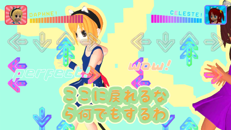 I created a wildly overambitious but extremely fun video for the Japanese version of the song, styled to look like a Japanese DDR machine. The video features animated 3D game character versions of D&C created and ‘shot’ in Unity, the whole lot was painstakingly animated by hand, and to finish it off we shot some real life machines in a brilliant local arcade and comped our ‘game’ into real life.